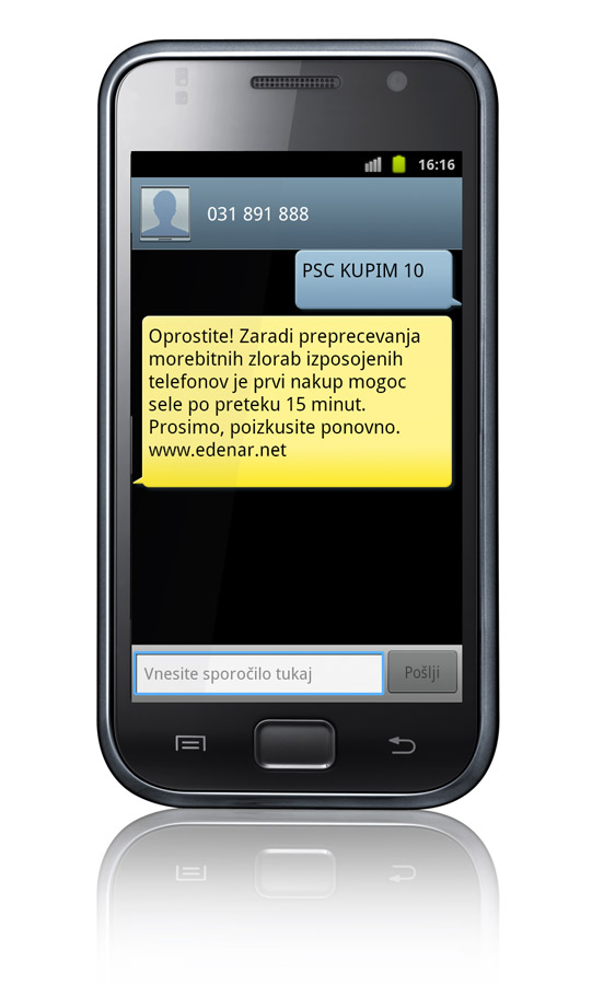 Telefon bo poslal USSD zahtevo in vas obvestil o uspešnosti izvedbe zahteve, s številke 031 891 888 pa boste prejeli SMS sporočilo s potrdilom o plačilu.